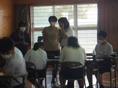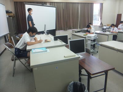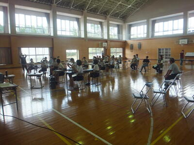 現在、生徒は午前8時から午前8時20分まで、『各教科の補充学習等』に取り組んでいます。みんな一生懸命でした。時間を有効に使っています。1・2年生は、登校してから補充学習が始まる前(午前8時まで)は、『英検対策』にも取り組んでいます。目標に向かってファイトです。(校長:鎌田浩二)