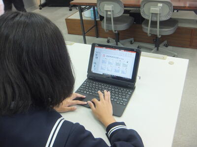 ※タブレットPCの資料を見ながら、自分の意見をまとめています。メモを書かずに意見をまとめています。すごいですね。