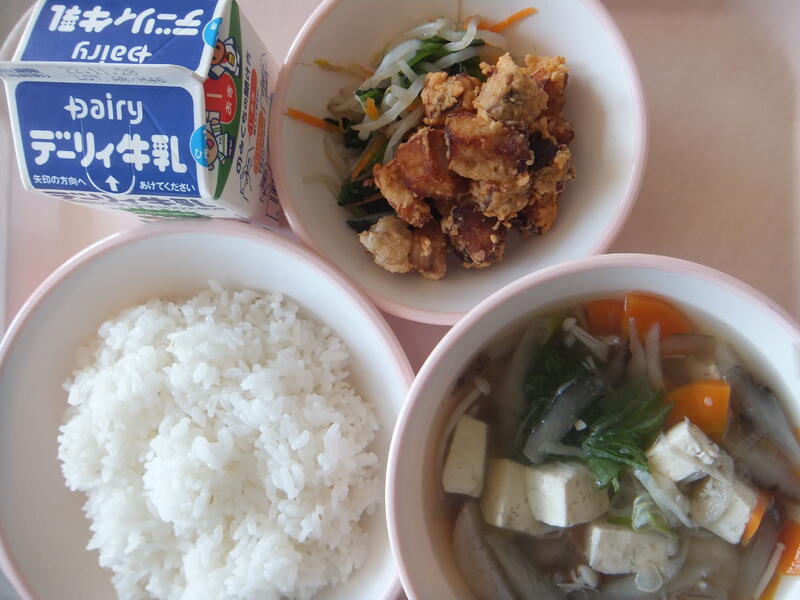 今週:11月14日(月)~11月18日(金)は『地産地消週間』です。それにあわせて、今日の給食は『宮崎応援給食:ぶり』、そして『ひむか地産地消の日』でした。メニューは、牛乳・麦ご飯・ぶりの竜田揚げ・もやしのショウガ和え・根菜汁でした。今回は、高原町産米、野尻町産えのきたけ、宮崎県産麦、切り干し大根、ごぼう、ほうれん草が使われていました。いつもおいしい給食をありがとうございます。(校長:鎌田浩二)