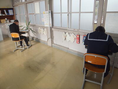 ※ 現在、3年生は午後の時間を使って、『三者相談』を実施しています。卒業後の進路について、しっかりと話し合って決定してください。そして、その目標に向かって一生懸命に取り組んでください。保護者の方には、お忙しい中来校していただき、ありがとうございます。ご質問等がありましたら、遠慮なく職員にお尋ねください。