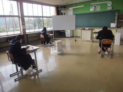 ※1年生、理科のテストです。一人一人の距離をとっているので、写真1枚に入りませんでした。