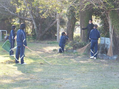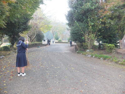 現在、火曜日を中心に、朝の時間を使って、生徒が『落ち葉』を清掃してくれています。11月22日(火)は『あいさ2運動』と『落ち葉の清掃』に分かれて活動してくれました。ありがとうございます。おかげできれいになりました。(校長:鎌田浩二)