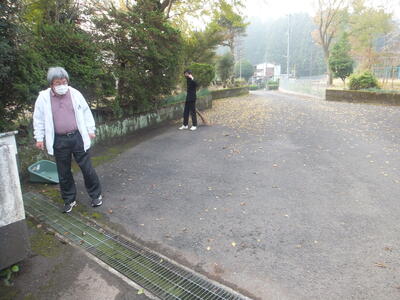 ※写真の奥に見えているみなさんは『落ち葉の清掃』をしています。