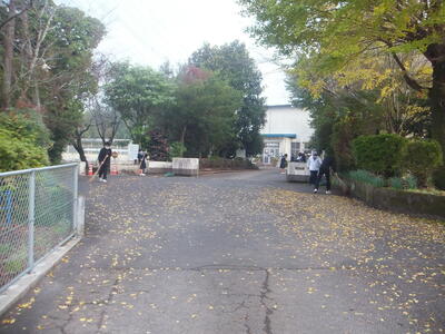 ※正門前です。たくさん落ち葉が落ちています。