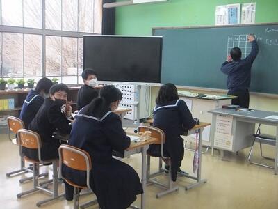 本日:2月24日(金)、3年生は最後の数学の授業でした。授業の後半では、数学に関するゲームが行われていました。お疲れ様でした。(校長:鎌田浩二)