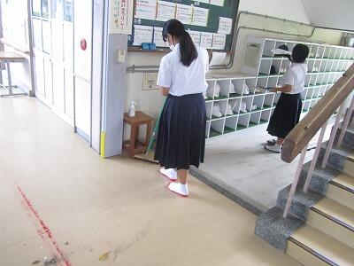 9月19日に2回目のクリーンアップ活動が行われました。今回は玄関から職員室前の1階廊下のクリーンアップを行いました。クレンザーをつかって廊下を磨き、ピカピカになりました。
