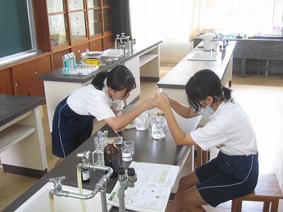 9月10日、2年生の理科の授業では、だ液のはたらきを調べる実験をしていました。