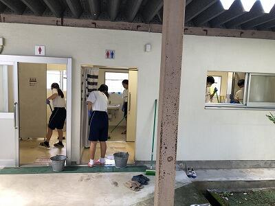 9月11日にクリーンアップ活動が行われました。これは、生徒総会で、学校の環境美化活動を行いたいという意見が実現したものです。今回は、トイレの清掃を中心に行いました。みんなで協力してきれいにすることができました。自分たちの意見から取組までしっかりと実現していて本当に素晴らしいですね。