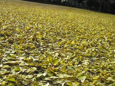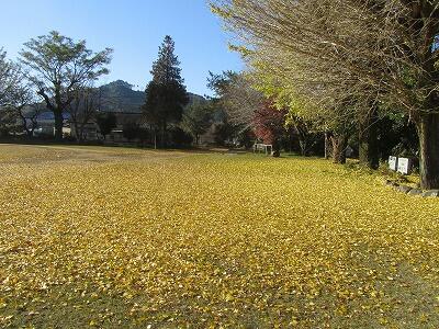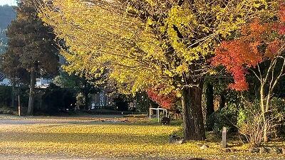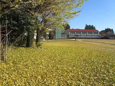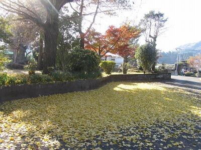 12月9日に少しずつ黄色くなっていたイチョウが落葉しました。朝、寒く、それが引き金だったのか、7時すぎから8時すぎぐらいまで、雨のように次々と落葉しました。まわりにある紅葉なども色づき、一気に冬といった感じになりました。昨年に比べると少し緑がかっているようですが、子どもたちは楽しそうに卒業アルバムの写真撮影をしていました。