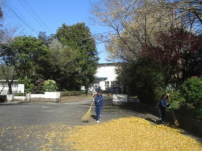 12月12日の昼休みに、落ち葉の掃除をしました。朝のあいさ2運動でも使用した、寄贈いただいたほうきが、大活躍です。新しいのでとても掃きやすく、どんどん落ち葉が集められていきました。自分たちで自主的にきれいにしていこうという行動がとても素晴らしいですね。