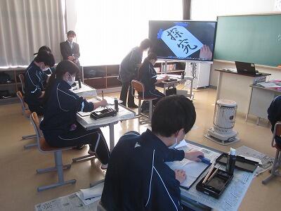 12月13日に、町の校長会が本校であり、授業参観がありました。2年生は社会、3年生は書写の授業でした。