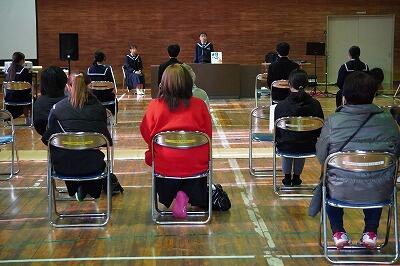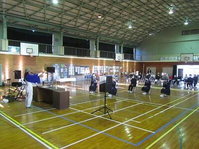 立志式では、2年生の立志の誓いの発表やこれまでの成長の足跡スライドショー、東雲太鼓、そして、記念講演としてBAMBOO ART MIYAZAKI の 成澤けやき 先生による「人生の進め方」のお話をいただきました。先生は、世界各国でストリートパフォーマンスのパフォーマーとして、様々なフェスティバルやイベントで演奏を行い、現在は宮崎県日向市を拠点として、日本各地で演奏や講演をされるなど活躍をしておられます。人生は様々な選択があり、上手くいかないこともある。失敗してもそれはラッキーなことと捉えて前向きに人生を進めていくと失敗が成功に生きてくる。という自身の豊富な経験をもとに貴重なお話をしていただきました。ありがとうございました。