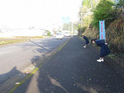 4月11日(金)にあいさ2運動を行いました。6人が卒業し、2名となりましたが、先生方も一緒に、元気に気持ちの良い挨拶を行いました。