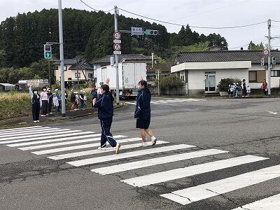 4月18日(金)に交通安全教室が行われました。今年は、小中合同で、主に横断歩道の渡り方についての学習を行いました。小林警察署の方と交通安全協会の皆様方に来校いただき、指導をしていただきました。小学校のグラウンドで練習をした後に実際の交差点を渡りました。小学生も中学生もとてもスムーズに横断することができていました。日常生活の中で生涯使う力になります。学習したことをこれからの生活に役立てて欲しいと思います。