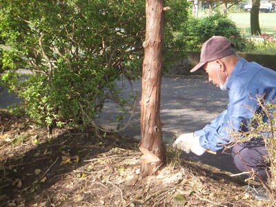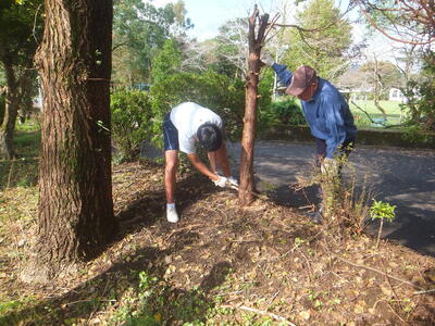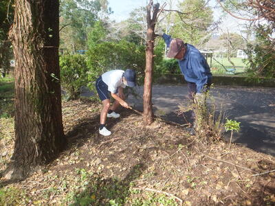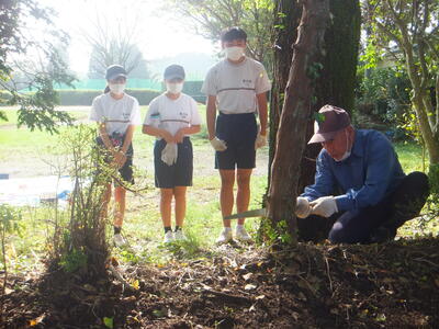 本日:9月28日(水)の2年生の技術は、1年生の時に学習した木材加工(木工)の復習でした。生徒は枯れている細い樹木を切って、その断面等の確認をしていました。現在の山で行われる伐採作業等は、機械化が進んでいるという話を聞いたことがあります。将来、みなさんがどのような道へ進むかわかりませんが、キャリア教育の面からも勉強になったのではないかと思います。体験することはいいことです。お疲れ様でした。(校長:鎌田浩二)