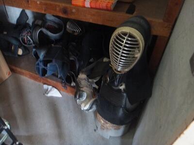 ※倉庫の中です。剣道の防具を発見しました。