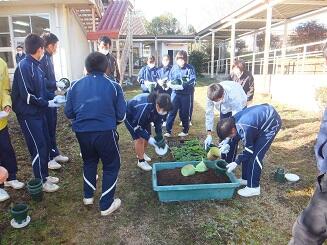 昨日:12月1日(水)、高原町内の郡山園芸さんに来ていただき、サイネリアの植栽を行いました。鉢に植えた後、各教室でお世話をすることになりました。指導された内容をしっかりと守って、3月の卒業式や4月の入学式で飾りましょう。(校長:鎌田浩二)