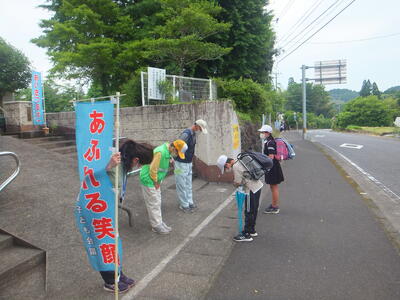 本日:5月20日(金)は、「あいさ2運動」でした。今日は英検対策の学習会もあり、全員はそろいませんでしたが、登校する小学生や行き交う車の方々にしっかりとあいさつができました。次回もよろしくお願いします。また、今日は、運動会前、最後の合同練習でした。練習中は雨が降ることなくよかったです。(練習が終わったら、雨が降り始めました。)君たちの熱意が伝わりましたね。運動会当日:5月22日(日)の天気は心配ないですが、明日の準備の天気が心配です。みなさんの熱意で「晴れ」にしてください。(校長:鎌田浩二)