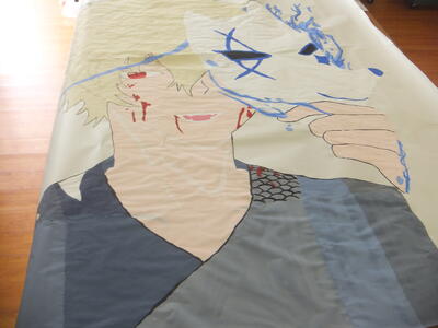 明日:5月22日(日)の運動会に向けて、団装飾も頑張っています。まだ、制作途中のものもあります。写真ではよく見えないかと思います。当日、じっくりとご覧ください。(校長:鎌田浩二)