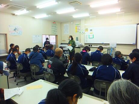 昨日:12月15日(水)、給食感謝集会を行いました。その中で、本町の加治木栄養教諭に食育に関する講話をしていただきました。和やかな雰囲気の中、生徒から積極的に質問があり、時間が足らないくらいでした。生徒は食生活と健康について学習をすることができたようです。ありがとうございました。(校長:鎌田浩二)
