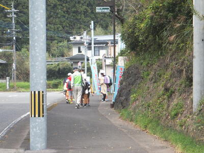 ※しっかりと整列して登校しています。地区のボランティアのみなさん、見守りありがとうございます。