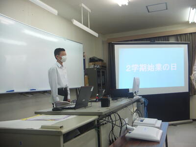 本日:10月12日(水)、『2学期の始業式』を行いました。各学年代表生徒が2学期の抱負を発表しました。3人ともしっかりと自分の考えを述べました。2学期は、いろいろな行事があります。それぞれの行事を楽しみながら、毎日を過ごしましょう。2学期が終わったら、進級や卒業をむかえます。今のうちから準備しておきましょう。2学期もよろしくお願いいたします。その他、『第2回学力コンテストの表彰』と『ロードレース大会の激励式』も行いました。(校長:鎌田浩二)
