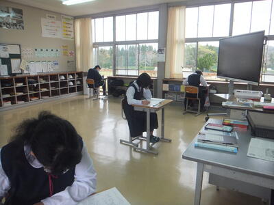 本日:10月13日(木)と14日(金)の2日間、3年生は『学力診断テスト』が行われます。本日が国・理・英、明日が社・数です。自分の進路実現に向けて、精一杯、テストに取り組んでください。(校長:鎌田浩二)