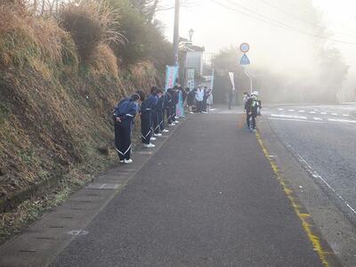 本日:3月10日(金)、『あいさ2運動』でした。中学校前の歩道から、行き交う車や登校する小学生にあいさつしました。地域のボランテイア(民生委員・児童委員や交通指導員等)のみなさま、朝早くから子どもたちの見守り、ありがとうございます。(校長:鎌田浩二)