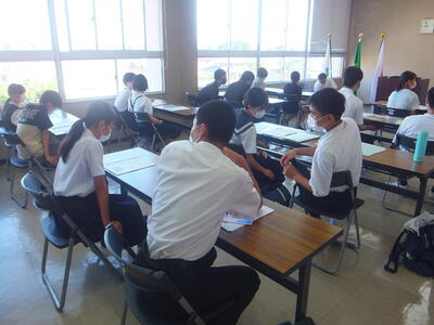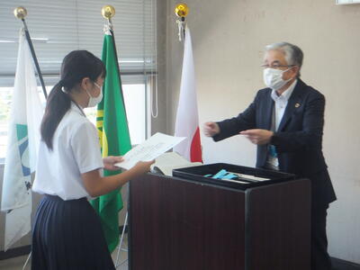 本日:8月3日(水)、高原町役場で「高原子ども未来議会ワークショップ」が行われました。本校からは、温水歩花さん(2年生)と西村優輝さん(3年生)が出席しました。認定証の交付後、議会についての説明がありました。休憩後、役場の方との話し合いが行われ、その後は役場内や議場の見学でした。社会科見学の一面もあり、充実した時間を過ごすことができました。「高原子ども未来議会」は10月11日(火)に行われます。西村優輝さんが議長を務めます。頑張ってください。暑い中、お疲れ様でした。保護者の方も送迎等、ありがとうございました。(校長:鎌田浩二)