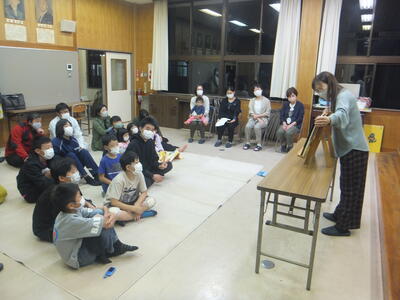 先週:11月11日(金)、小学校の音楽室で『小中合同の家庭教育学級』を開催しました。今回は、日頃、子ども達に読み聞かせをしていただいている『フルーツバスケット(読み聞かせのボランティア)』のみなさんに来校していただき、子どもや保護者、そして先生方に読み聞かせをしていただきました。参加されたみなさま、遅くまでありがとうございました。(校長:鎌田浩二)