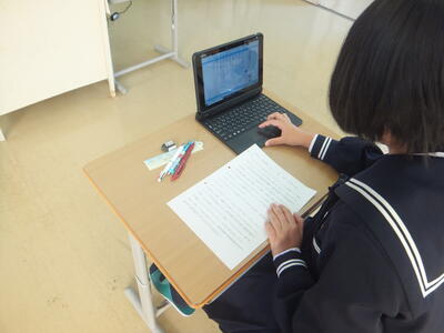 昨日:11月8日(火)の授業のようすです。1年生は『音楽』でした。3年生は『美術』でした。1年生も3年生もみんな集中して授業に取り組んでいました。そして、楽しそうに授業を受けていました。本日:11月9日(水)2校時、1年生は『県英テスト』を受験しました。自分の持っている力をしっかり発揮してほしいと思います。そして、3校時、2年生は国語の研究授業でした。ちょっと緊張もみられましたが、集中して取り組んでいました。お疲れ様でした。(校長:鎌田浩二)