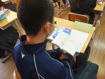 ※学習課題、さし絵、授業の流れが提示してあります。授業の流れがよくわかりますね。
