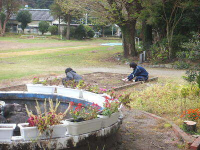 本日:11月1日(火)から、清掃時間を使って『花壇の整備』が始まりました。本年度いっぱい、火曜日を中心に草抜きや花摘み等の活動を行います。今日はALTの先生も一緒に作業をしていただきました。ありがとうございます。また、花の水やりについては、環境保体委員会より提案される予定です。人数も少ないし時間も短いし大変だとは思いますが、よろしくお願いいたします。(校長:鎌田浩二)