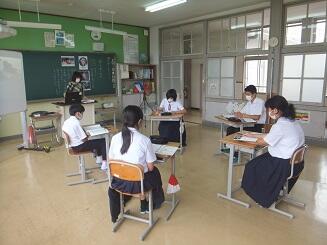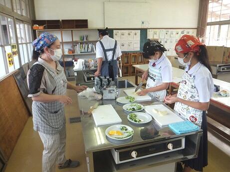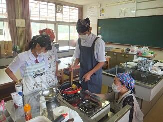本日:7/7(水)、1年生が調理実習を行いました。卵焼きをつくったりリンゴやキュウリを切ったりしました。家でも復習してみるといいですね。(校長:鎌田浩二)