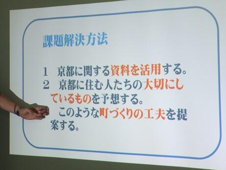 「どうして、京都市民は、町づくりの工夫に力を入れているのだろう。」という学習課題で授業を行いました。生徒は自分の考えをしっかりと発表していました。