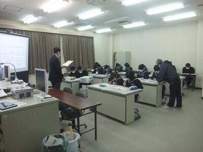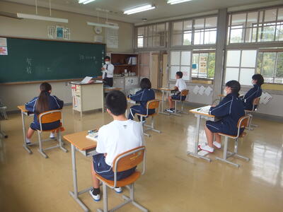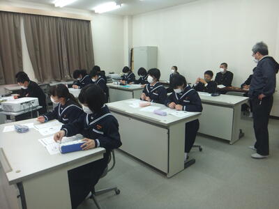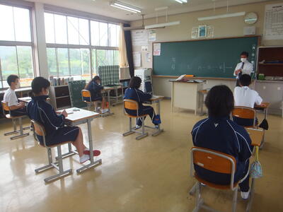 本日:4月13日(水)より各教科の授業が始まりました。ほとんどの教科がオリエンテーション(授業の進め方や勉強の仕方、宿題やノートの使い方等)等を中心に行われていました。1年生の数学の授業でも、オリエンテーションが行われていました。早く中学校に慣れてください。そのような中、2年・3年生は県英テストが行われました。みんな、集中して取り組んでいました。明日は、全学年、県数テストが行われます。頑張れー(校長:鎌田浩二)