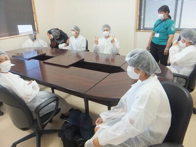 昨日、四位農園では生徒にあえず、生徒のようすが紹介できませんでした。本日の四位農園でのようすを紹介します。本日は高原工場の見学や野菜の加工作業、そして都城市内大型ショッピングセンターでの販売のようすの見学が行われました。お疲れ様でした。