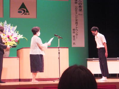 7/2(土)、高原町総合保健福祉センター ほほえみ館で「高原町青少年健全育成町民大会」が行われました。その中で、「青少年意見発表」と「健全育成入選標語」の表彰が行われました。本校からは、以下の生徒が選ばれました。おめでとうございます。