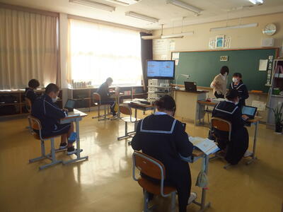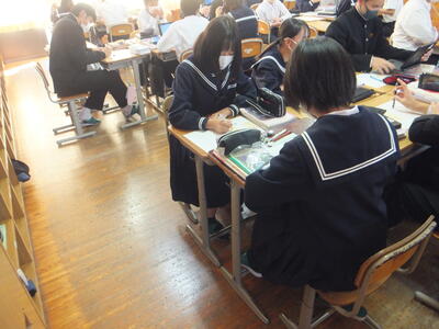 本昨日:11月8日(火)の授業のようすです。1年生は『音楽』でした。3年生は『美術』でした。1年生も3年生もみんな集中して授業に取り組んでいました。そして、楽しそうに授業を受けていました。本日:11月9日(水)2校時、1年生は『県英テスト』を受験しました。自分の持っている力をしっかり発揮してほしいと思います。そして、3校時、2年生は国語の研究授業でした。ちょっと緊張もみられましたが、集中して取り組んでいました。お疲れ様でした。(校長:鎌田浩二)