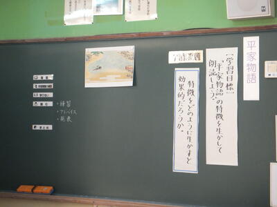 ※2年生、国語の研究授業です。『平家物語』の特徴を生かして朗読することが目標です。
