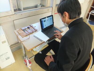※3年生、理科の授業です。タブレットPCを使って調べ学習をしています。
