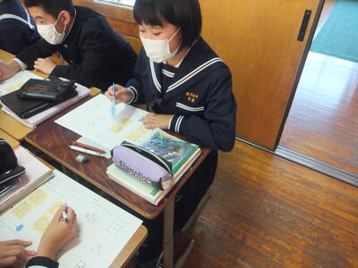 ※2年生、数学です。一生懸命に取り組んでいます。