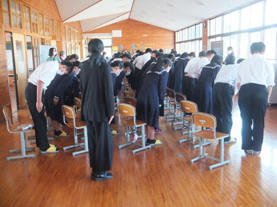 ※3年生、礼法について、宮崎市内の高等学校の先生から話を聞きました。