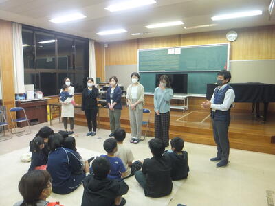 本先週:11月11日(金)、小学校の音楽室で『小中合同の家庭教育学級』を開催しました。今回は、日頃、子ども達に読み聞かせをしていただいている『フルーツバスケット(読み聞かせのボランティア)』のみなさんに来校していただき、子どもや保護者、そして先生方に読み聞かせをしていただきました。参加されたみなさま、遅くまでありがとうございました。(校長:鎌田浩二)