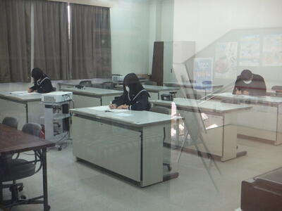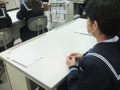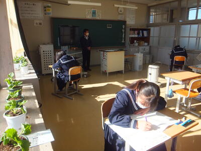※2年生、英語のテストです。出入口のドア越しに撮りました。ガラスに反射してしまいました。ちょっと見えにくいです。すみません。