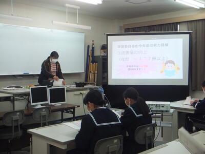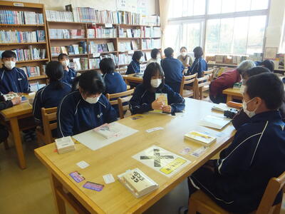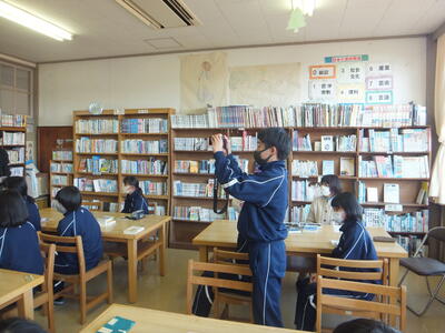 本本日:12月20日(火)、職員も一緒に『図書館祭り・ビブリオバトル』を行いました。笑いや笑顔がたくさんある楽しい雰囲気でした。4つのグループから『チャンプ本』が選ばれました。どのグループも先生方の本が選ばれました。生徒のみなさん、先生方に気をつかってくれてありがとうございます。(校長:鎌田浩二)
