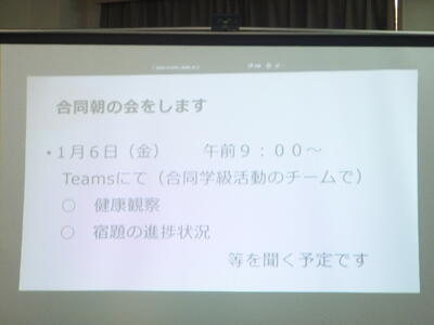 ※タブレットPCを使って、1/6(金)、朝の会を実施します。