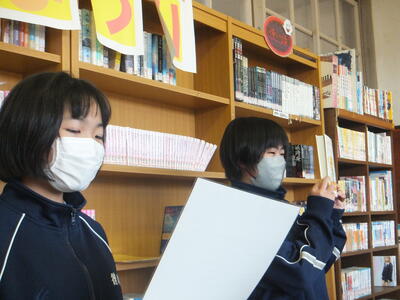 王冠本日:12月20日(火)は『図書館祭り・ビブリオバトル』で盛り上がりましたが、さらに放課後は『全校しりとり』でも盛り上がりました。黒板に絵を描いて『絵しりとり』でした。みんなが笑顔で楽しく過ごせることが一番だと思います。みなさんの笑顔をみていると『ほっ』とします。(校長:鎌田浩二)