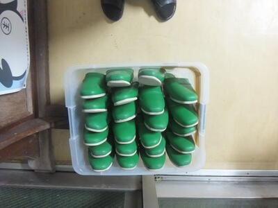先日、校内を歩いていて『はっ』としました。『来客用スリッパ』がきれいに整理され箱に収納されていました。以前も『ぐちゃぐちゃ』に乱れていたわけではありませんが、写真のように整理されていなかったと思います。きれいにしてくれてありがとうございます。『ほっ』とする気持ちのよい日でした。(校長:鎌田浩二)
