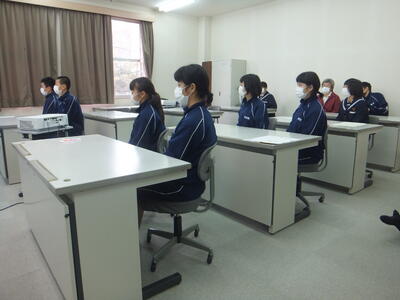 ※先生の話を聞いています。